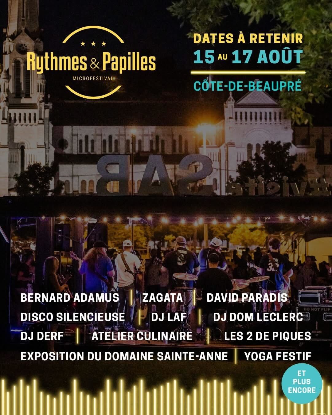 Du 15 au 17 août 2025, vivez un microfestival gratuit sur les rives du fleuve à Sainte-Anne-de-Beaupré. Au programme : musique live, ateliers culinaires, démonstrations gastronomiques, yoga, mixologie, camping et animations pour toute la famille – le tout dans une ambiance chaleureuse et festive .
