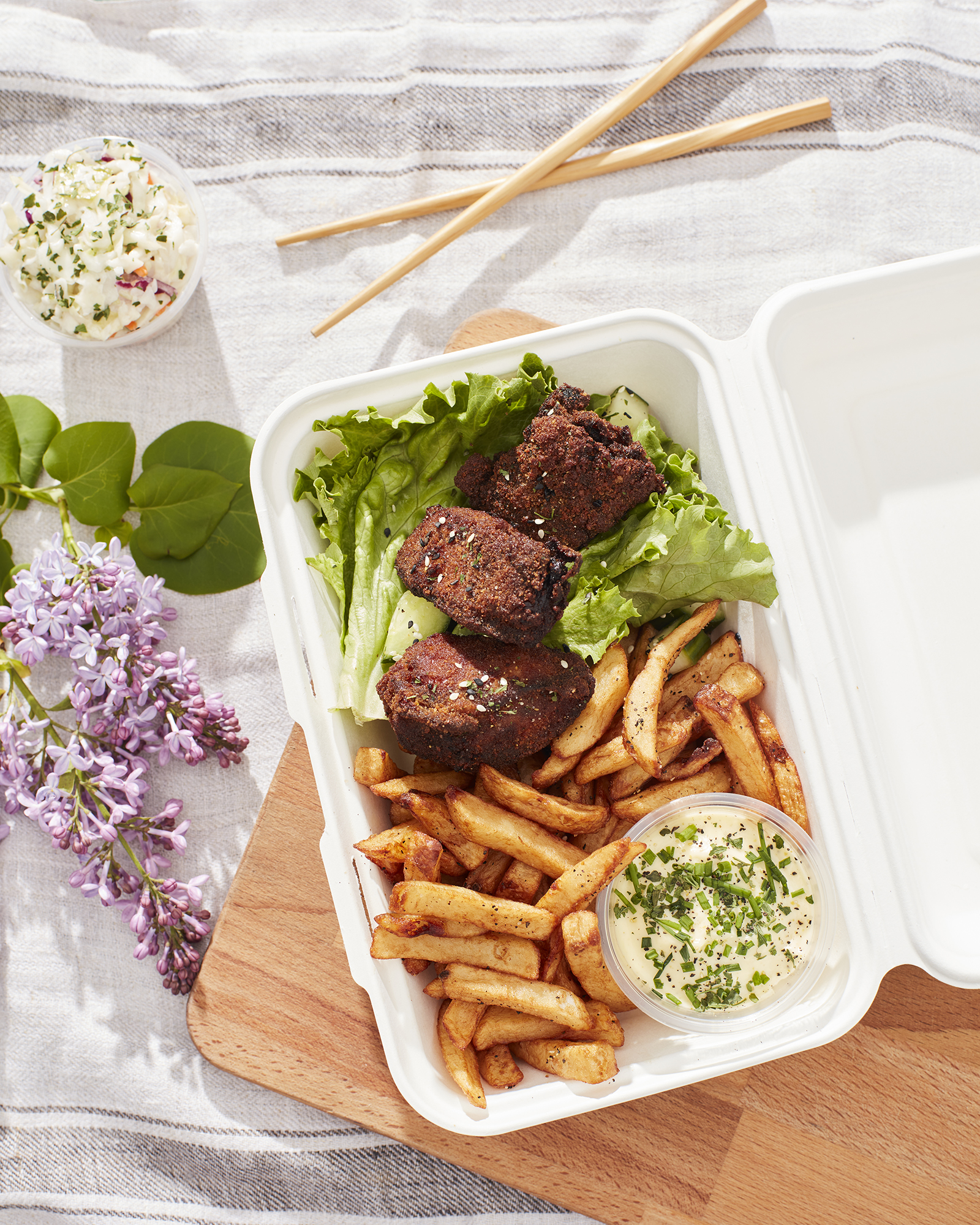 Dans le cadre de La Virée Enracinée, Le p’tit Patelin a créé la Salade riche en couleurs composée de verdures, légumes et petits fruits frais, tofu pané et vinaigrette à l’argousier. L’expérience ne s’arrête pas là! Vous pourrez aussi vous procurer leur dessert vedette de l’été, un lassi au granola chaud à base de yogourt, de miel, de petits fruits et de chocolat, l’ensemble rehaussé de noix, céréales et épices. À emporter seulement, ce menu est une occasion idéale pour les visiteurs de se munir d’un pique-nique gourmand à apprécier sur la jolie plage de Cap-Santé.